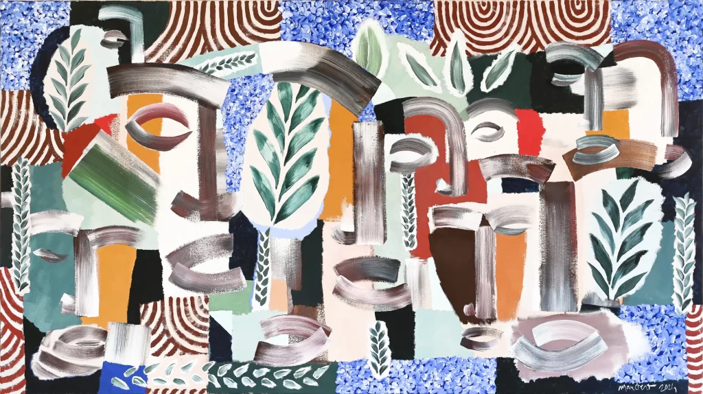 Dans sa quête du geste libre, filtré jusqu’à l’abstraction, MAUBERT produit une œuvre intense dédiée à l’homme et sa complexité. Avec son imaginaire peuplé, l’artiste nous offre une source d’évasion, un univers de puissance tribale où aller à la rencontre de l’autre et où, derrière ces Têtes, nous réinventer et naviguer à travers les strates de notre identité ?