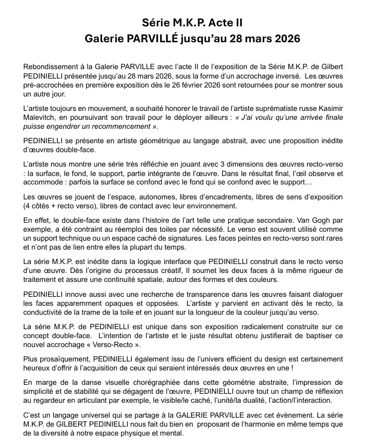 Série M.K.P. – Galerie Parvillé, Nice — 11 mars 2026 au 20 mars 2026